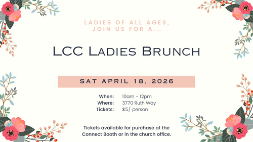 Ladies, you are invited to join us for a LCC Ladies Brunch, complete with worship, delicious food, and a short devotional.